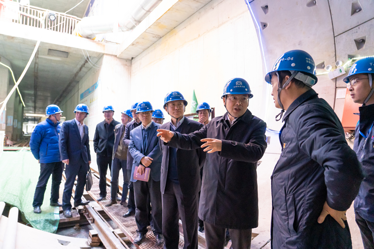 省国资委、建工控股集团领导始终关注安徽三建发展。图为省国资委党委书记、主任李中,建工控股党委书记、董事长赵时运调研安徽三建合肥轨道4号线大强路站项目