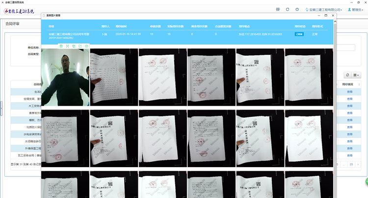 2019年公司结合实际在218系统中,成功将公司信息管理系统合同评审流程和具有指纹加锁功能的物联网印章终端进行了集成,使得各项合同只有通过系统评审后,方可打印合同文本,授权印章管理员指纹解锁印章管理终端设备,进行用印。更为严密的是,系统将自动拍照记录用印人、用印文件等用印全过程并备案,有效防范了印章私盖、漏盖、外带、盗用等风险。