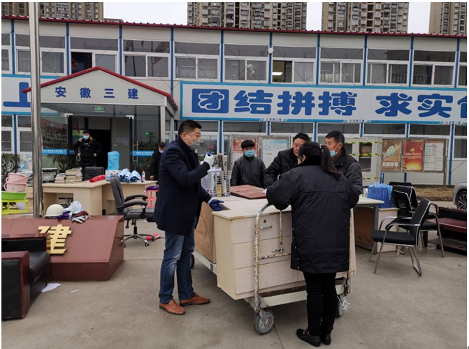 1月25日大年初一中午11:30,合肥市二院老年护理院项目留守经理高瑞凯接市二院党委电话,要求应急征用项目办公区,尽快将项目办公区整体移交合肥市二院做为新型肺炎疫情发热门诊及留观病房。接到消息分公司立即向公司党委做了汇报。安徽三建公司党委当即要求项目部坚决服从合肥市疫情防治工作需要,马上组织人员进行搬迁,迅速配合合肥市二院做好项目部办公区功能切换工作。公司党委委员、纪委书记、工会主席李家保赶到到现场调度、指挥。