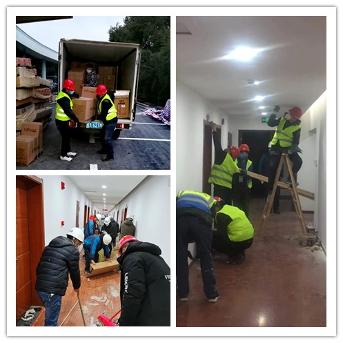 为了赶进度,元宵节当天晚上10点依然在大干抢工。装饰公司万和生经理、安装公司彭纯杰副经理和项目全体党员带头加班,全体项目管理人员一起上阵清理现场。“这是一个不平凡的元宵节!”一位戴着口罩的三建管理人员这样说。口罩已成项目标配。为了确保项目职工身体健康,项目采取分餐分散的方式就餐,每天安排专人对全体人员进行四次测量体温、发放并检查防疫措施落实情况,确保防疫到位。