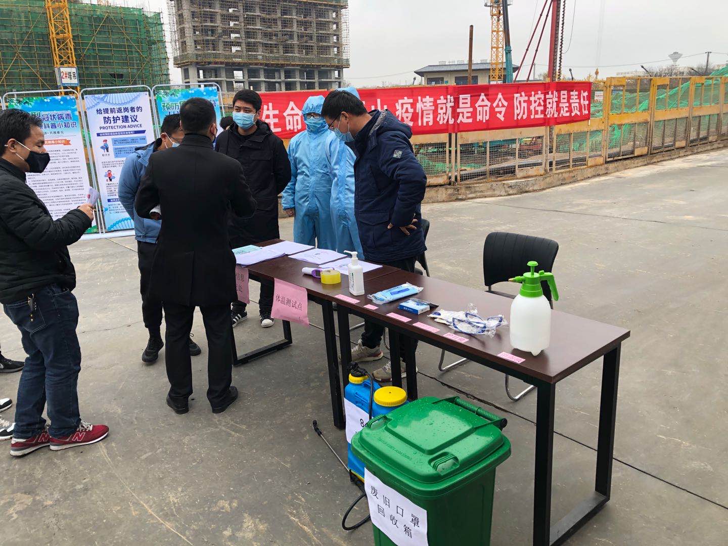 八公司积极配合合肥市疫情防治工作,春节期间加班将原合肥市二院项目办公区移交给市二院作为隔离病房使用。为尽快复工,2月24日,项目部与市二院负责人沟通协商重建临时办公区。2月28日,项目负责人高瑞凯带领项目部全体管理人员突击办公区建设,3月2日,办公区完成建设,将施工现场与市二院高危区域彻底隔绝,顺利实现复工。为做好项目防疫宣传教育工作,3月3日项目部联合市二院疫情防治办技术专家为农民工开展“疫情防治教程”培训,为农民工兄弟讲解“消毒”、“洗手”、“口罩佩戴”、“交通出行”等正确做法,普及防控知识,确保广大职工健康安全。