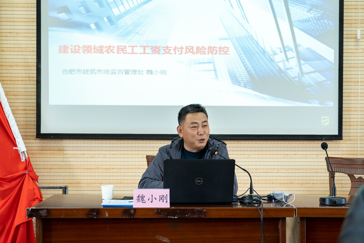 为贯彻落实国务院《保障农民工工资支付条例》,进一步强化公司劳务队伍管理,保障农民工工资支付,降低企业劳务纠纷和用工风险,4月24日公司邀请合肥市城乡建设局建筑市场监督管理处副主任魏小刚,以建设领域农民工工资风险防控为主题,对《条例》和相关政策进行了解析。