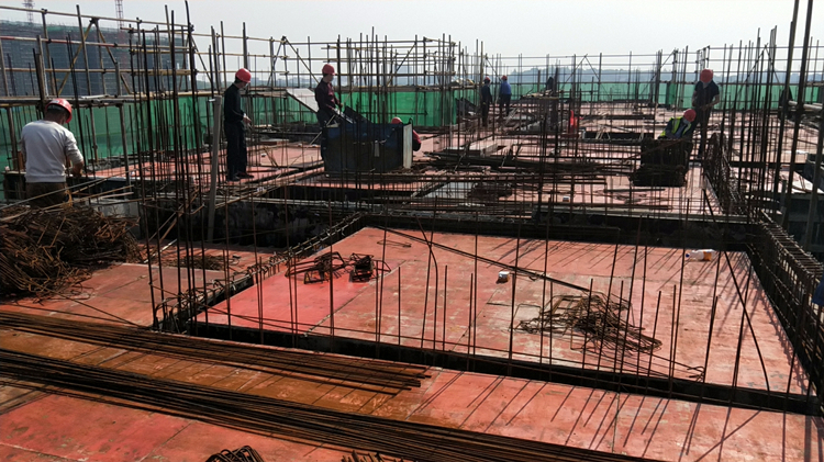 施工现场热火朝天,工人师傅正在开展钢筋绑扎