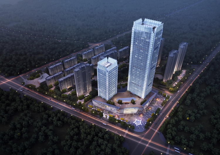 金寨“城市之光”超高层项目位于六安市金寨县,东临响山寺路,南至悬剑山。项目建设方是明发集团,总建筑面积约16万平方米,合同总价约4.5亿元,由2层地下车库、3层裙房及A栋超高层办公和酒店、B栋高层办公两栋主体塔楼组成。其中A栋:42层,总高度188米;B栋:18层,总高度108米,形成超高“双子楼”格局。