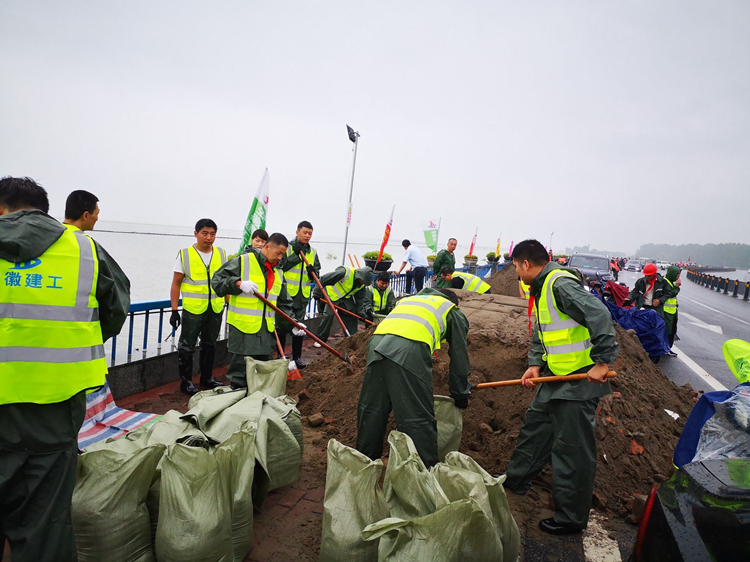 自7月19日公司已先后10余次组织党员突击队,青年突击队等前往庐江县白山镇金同联圩抗洪抢险、南淝河、大房郢水库、湿地公园等10多个地点地进行防汛抢险工作。