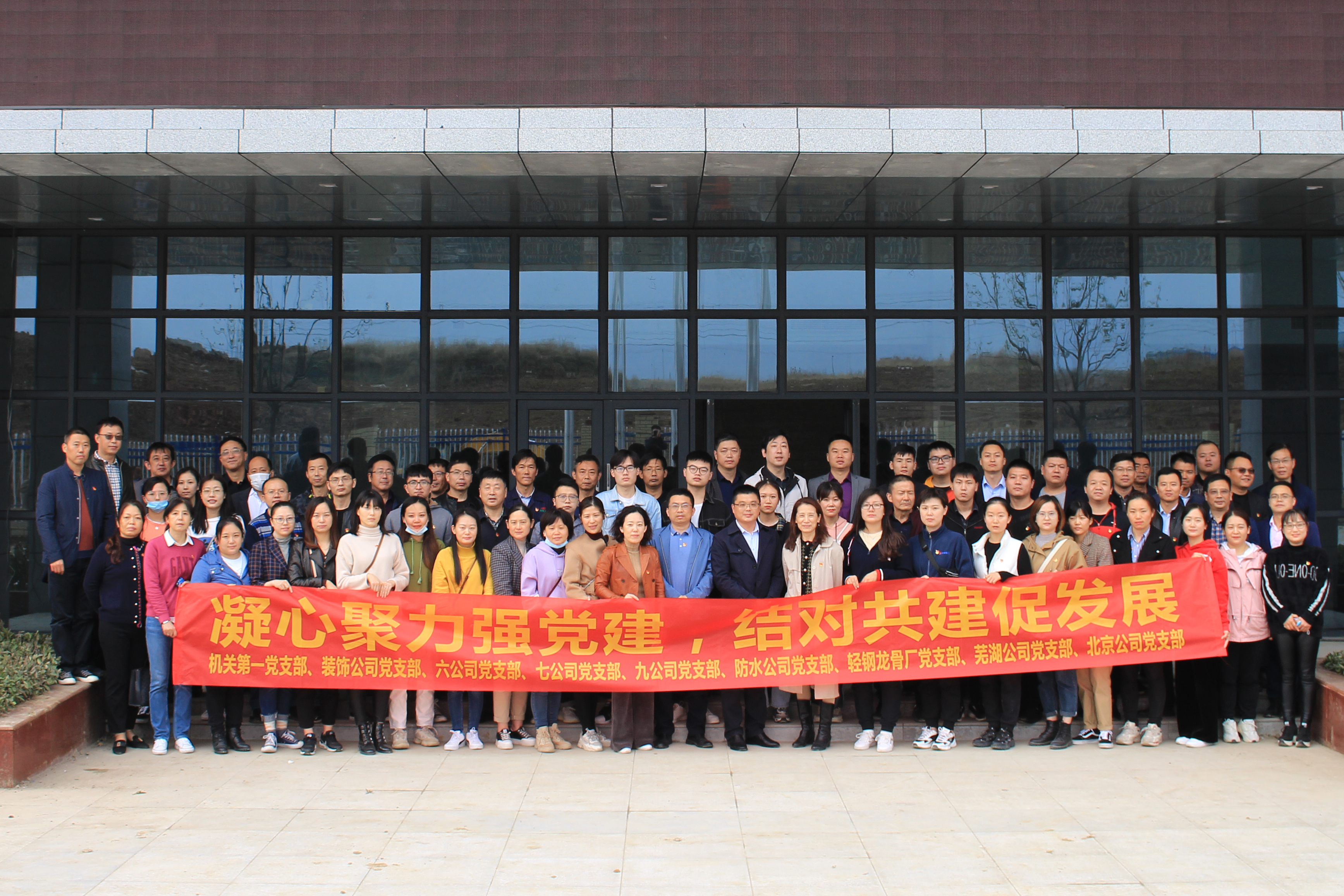 为进一步加强基层党组织建设和机关作风建设,密切党支部之间的联系,加强支部间的交流合作,实现党建工作与业务互融互动,2020年11月18日下午,安徽三建机关第一党支部联合公司所属装饰公司、六公司、七公司、九公司、轻钢龙骨公司、防水公司、芜湖公司、北京公司党支部,前往安徽建工北城工业有限公司项目部开展支部联建主题党日活动,活动以“凝心聚力强党建,结对共建促发展”为主题。九个支部70余人参与了此次活动。