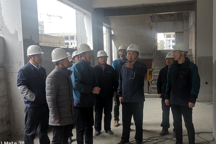 2021年2月24日上午,公司总经理何洪春到六安第一中学扩建项目调研复工复产工作。何洪春深入项目施工现场,实地查看了项目进度、劳务人员返岗等复工、复产具体情况。他要求四公司、装饰公司、安装公司和门窗公司等土建及各专业公司,要发挥产业链优势,加强沟通协调,紧紧捏成一个拳头,形成合力,确保按期完工,将六安一中扩建项目做成公司大兵团作战的典范。
