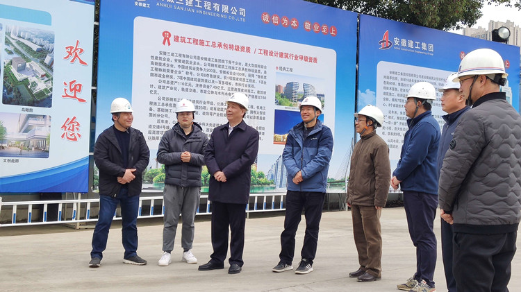 3月10日下午,合肥市委常委、组织部部长钱岩松一行到安徽三建公司承建的合肥市中心图书馆项目调研,合肥市重点局局长张家祥等参加调研。